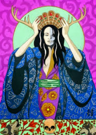 Segons la mitología celta pot aperèixer en forma de dona jove i bella o vella repugnant , i la seva cara es pàl-lida com la mort i el cabell a vegades es negre com la nit i aktres vegades és ros com el Sol.